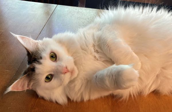 Diamond is a brown patch tabby (torbie) van meaning she is mostly white with color on her head and tail with one or two patches of brown tabby with patches of red on the rest of her body. She is a large girl and produces beautiful big sweet playful kittens.