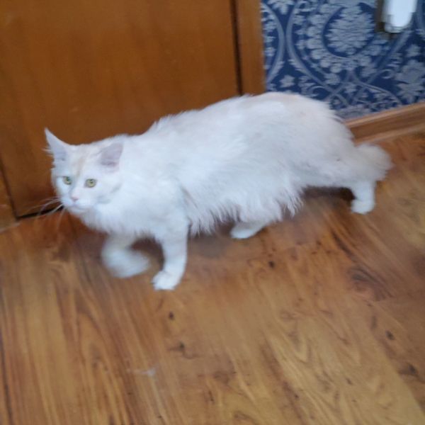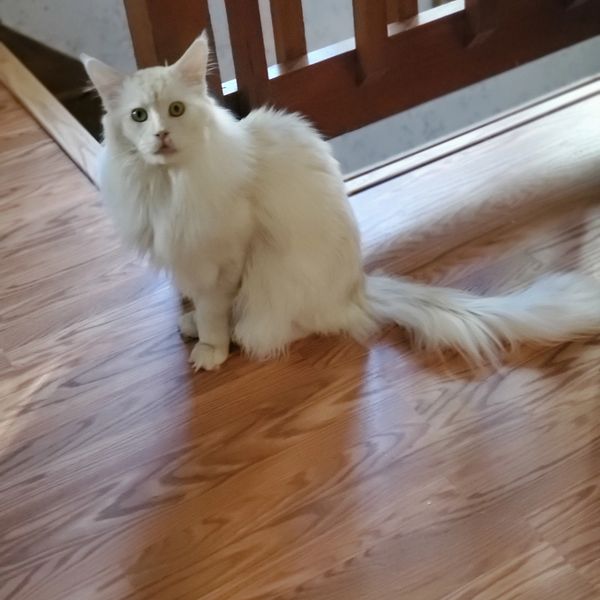 Jammers is our youngest stud cat. At first glance, he is white, but on closer look each hair on his body is tipped with cream. This color is in the silver genetics and is called a shell cameo and is one of the most rare of the silver presentations. Jammers fathers silver, smoke, and his own rare shell cameo color.